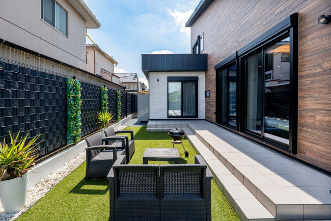 陽の光と風を招き入れながら、プライベートも守る中庭。開放感と安心感のどちらも叶える空間設計。