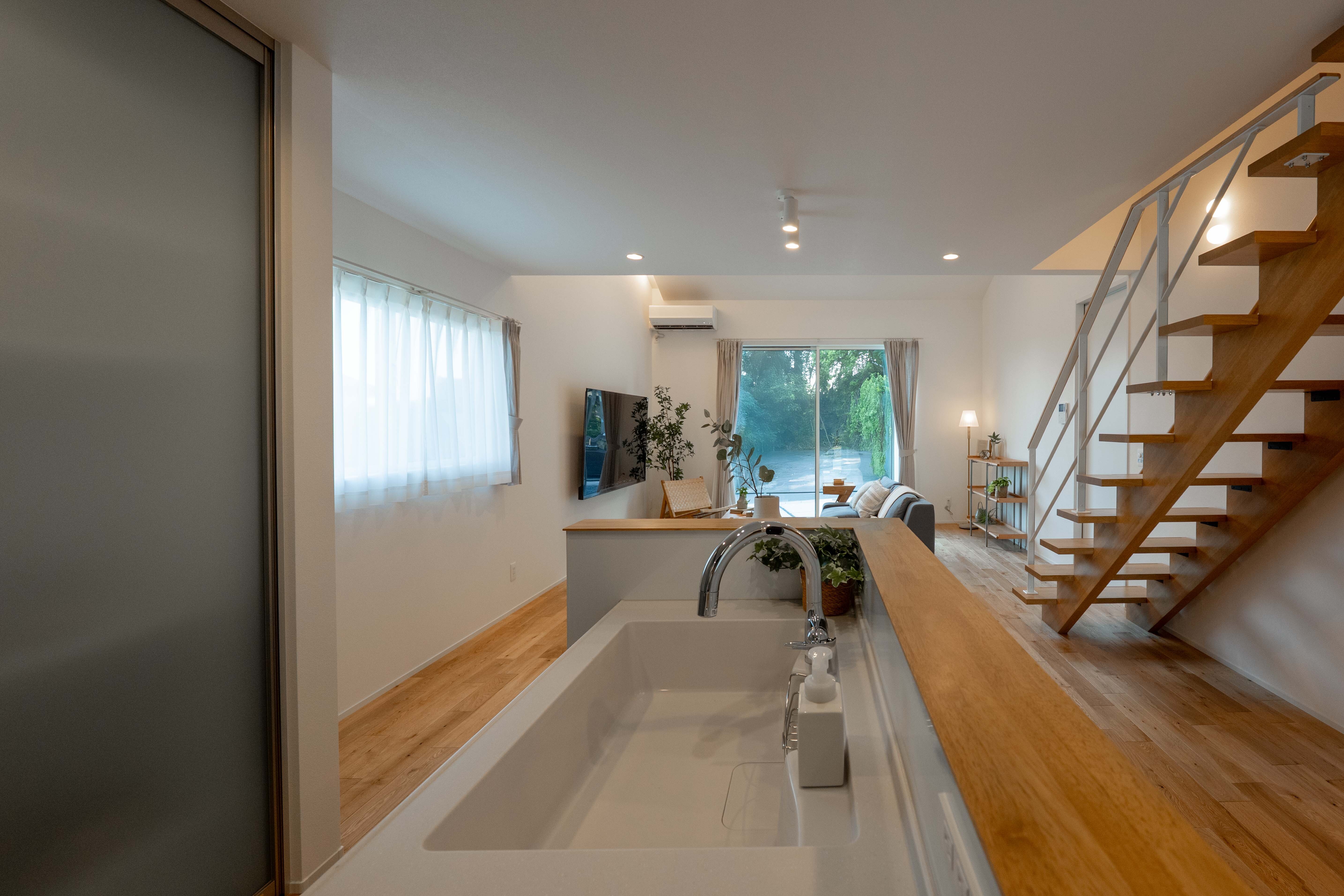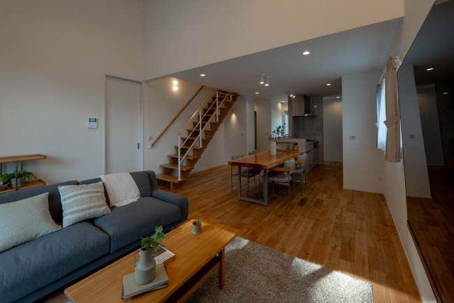 25畳の広々LDKに無垢の床を採用し、開放感と木の温もりに包まれる住まい