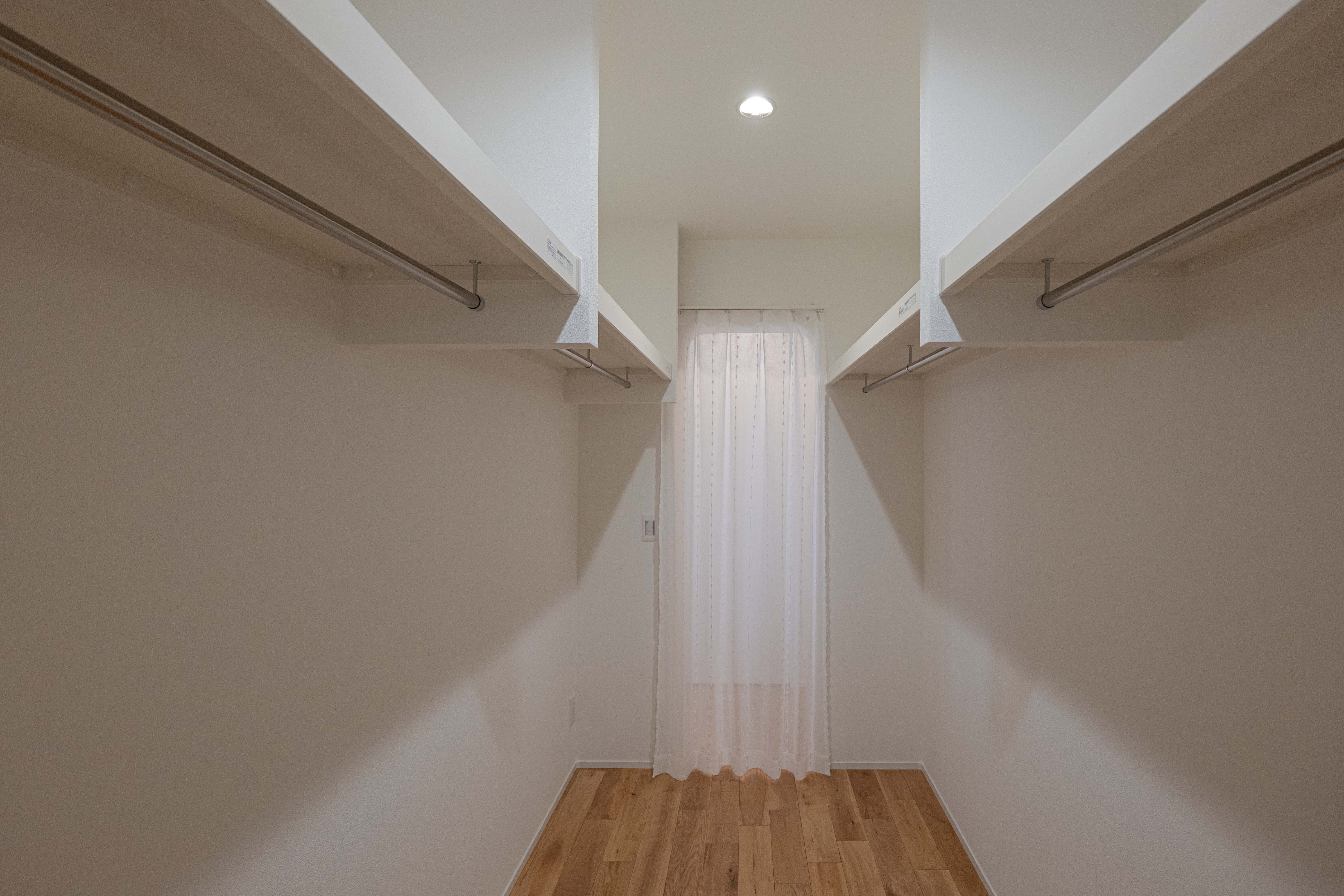 アーチの入口が魅力の3.26畳ファミリークローゼット。大容量で家族の収納をすっきりと