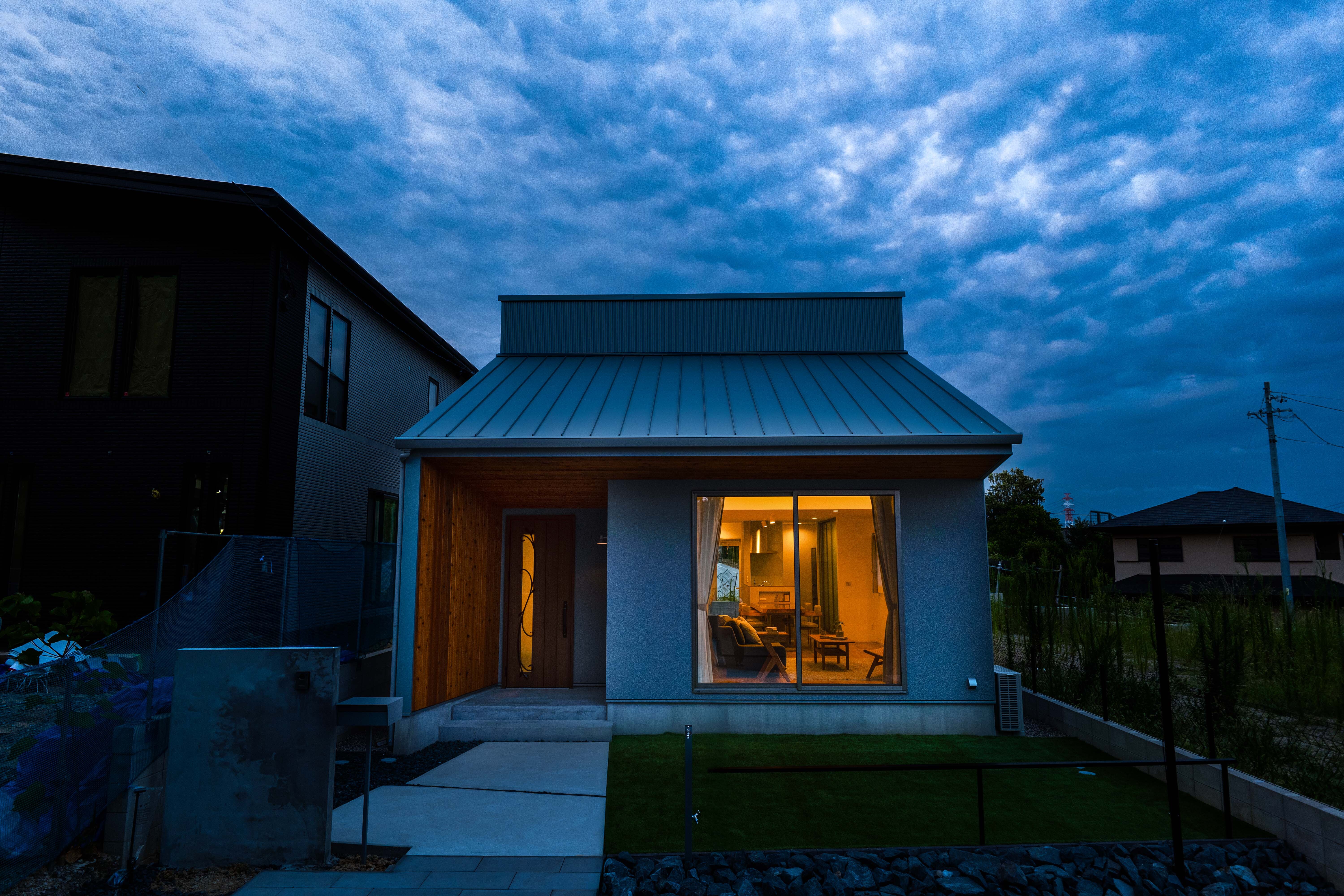 暮れゆく空にやさしく灯るあかり。家族を包み込む温もりを感じる美しい夕景の住まい