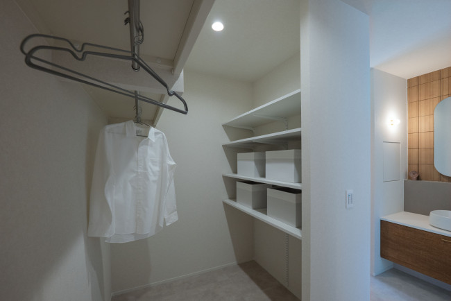 洗面室と隣接し、家事動線もスムーズな使い勝手の良い収納空間です。
