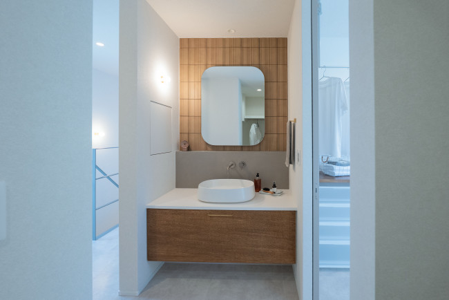 空間に溶け込むミラーと一体感のある収納で、使いやすさも追求。