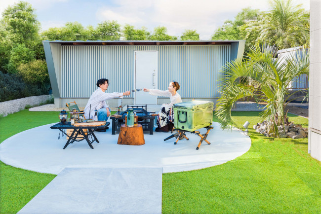 7畳の外部倉庫を、アウトドアリビングとして活用。