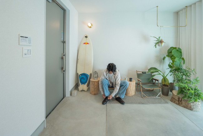 サーフボードやアウトドアギアを置いても余裕があり、趣味と暮らしが自然につながる空間。